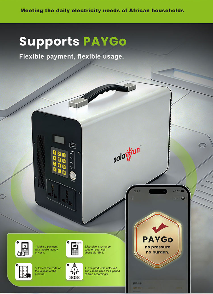 *Integrated PayGo platform compatibility (e.g., Kpay, Paygops) allows users to recharge via mobile money or cash, receiving codes via SMS for easy activation.