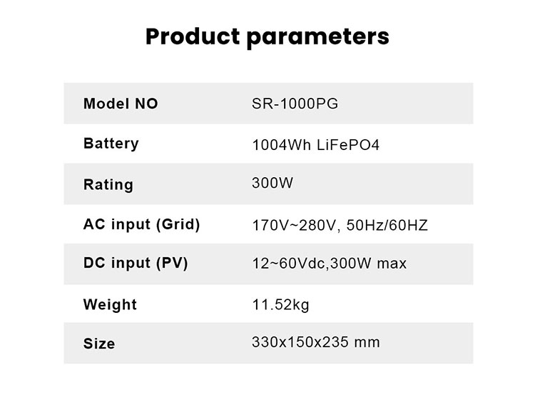 The SR1000PG Mini Cube ESS is a portable, all-in-one energy storage system with a rated energy capacity of 1.004 kWh, designed for reliable power backup and daily use.